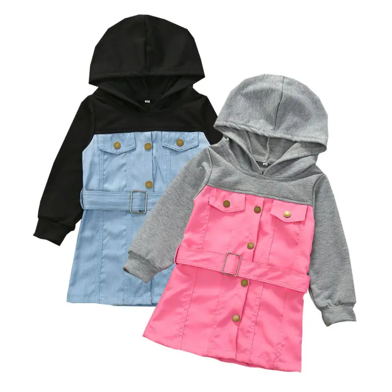Good Offer for New Toddler Kids Baby Girl Hoodie Sweatshirt Dress Long Sleeve Patchwork Hooded Button with Belt Co